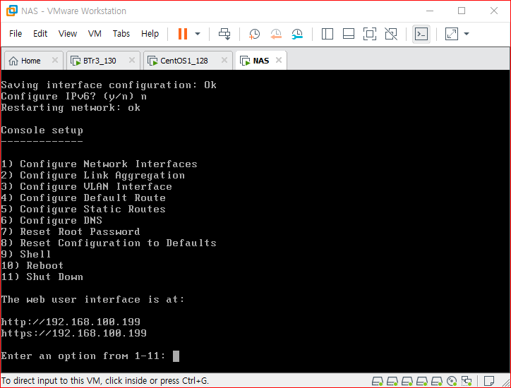 에서 firefox update 후 freeNAS에 지정한 ip 로 들어간다