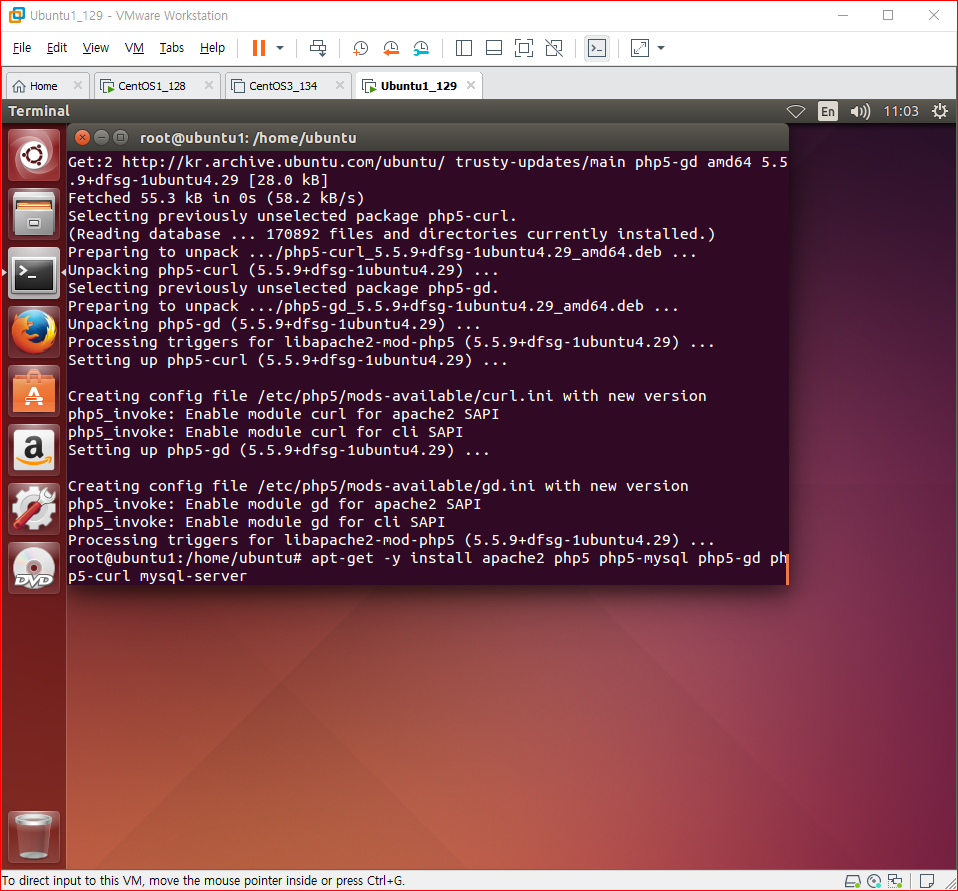 # apt-get -y install apache2 php5 php5-mysql php5-gd php5-curl mysql-server