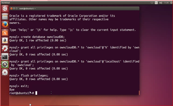 owncloud DB 생성후 passwd지정