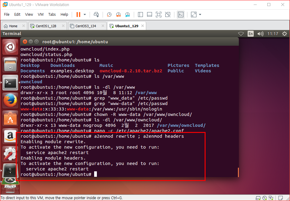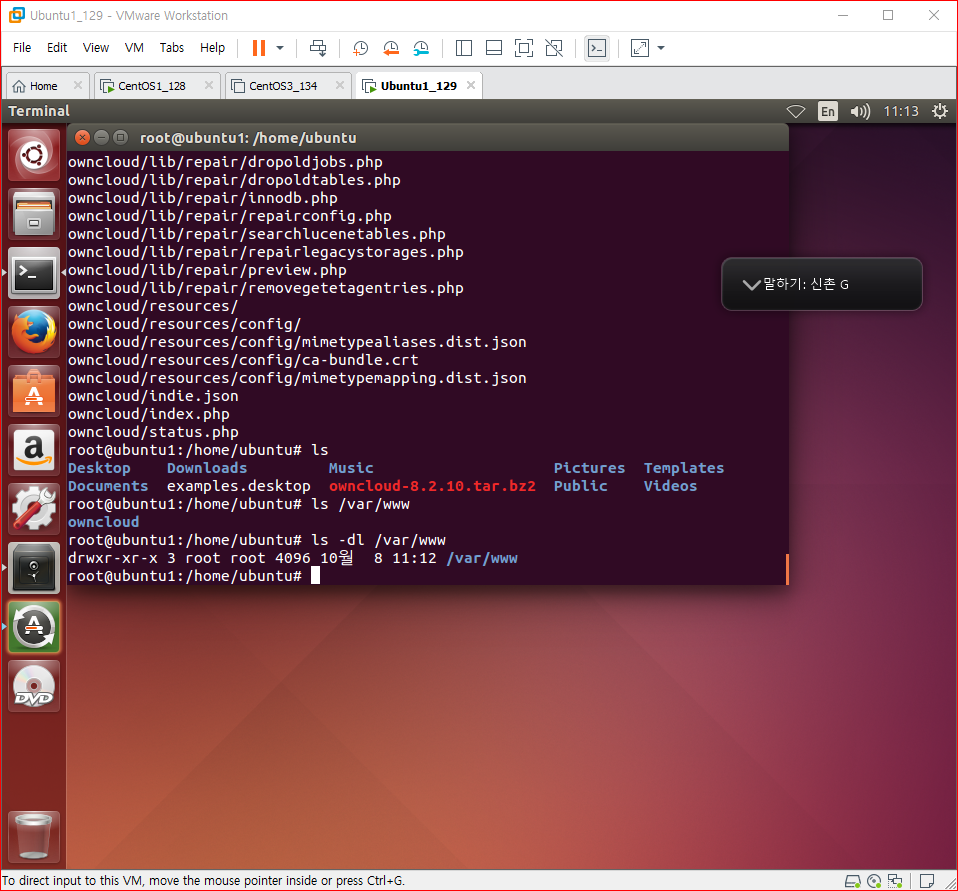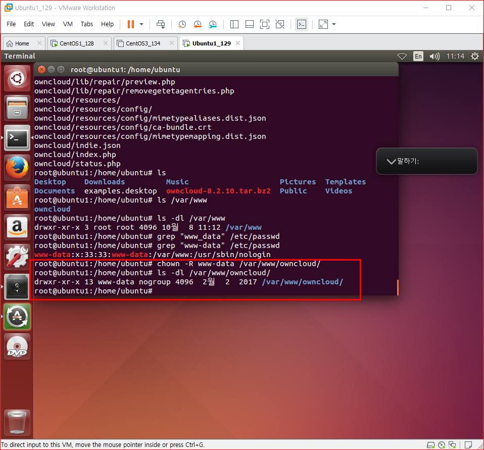ubuntu1 을 owncloud server로 만든다