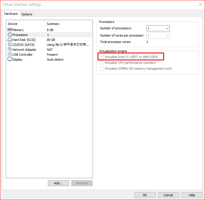 가상화는 반드시 체크 되어있어야한다