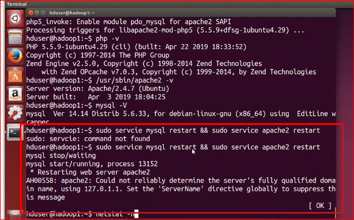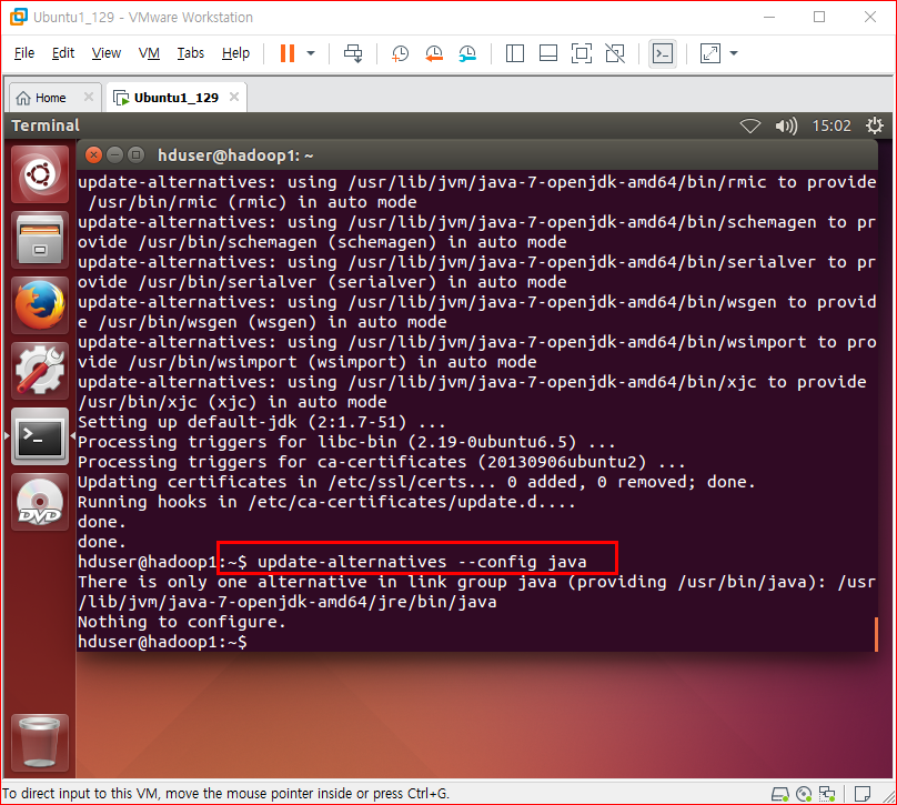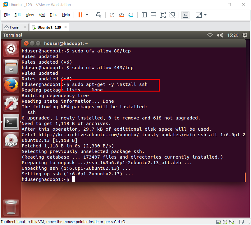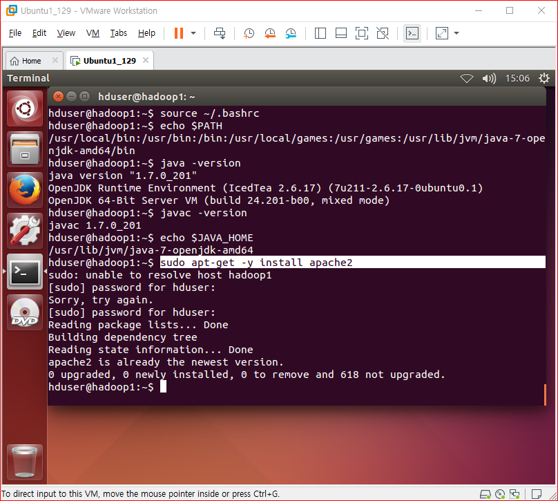 hduser 에서 apt-get update