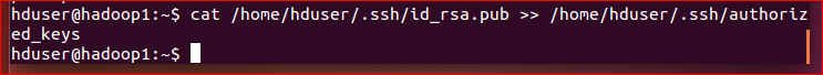 key 를 authorized_keys 파일을 생성하고 집어넣는다$ cat /home/hduser/.ssh/id_rsa.pub >> /home/hduser/.ssh/authorized_keys