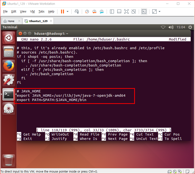 맨 밑에 추가한다# HADOOP_HOMEexport HADOOP_HOME=/usr/local/hadoop