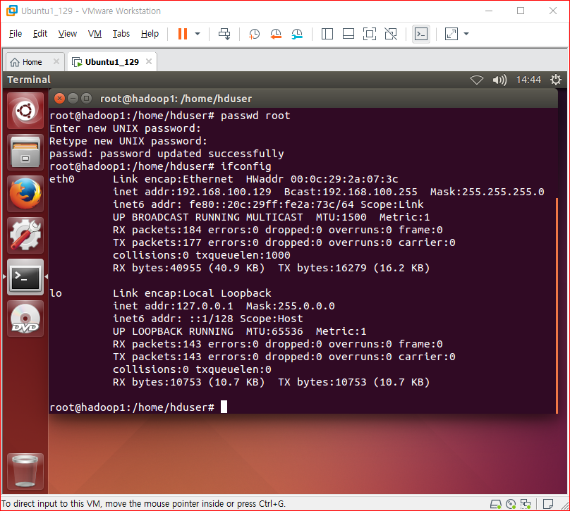 hduser 로 전환이제 sudo 명령어 사용 가능하다