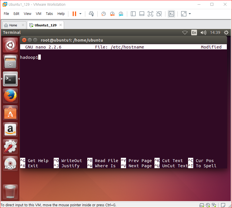 /etc/hosts 파일에 hadoop1 추가