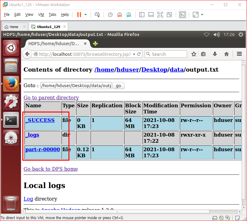 part-r-00000 파일에 들어가면 wordcount 결과를 확인할수있다