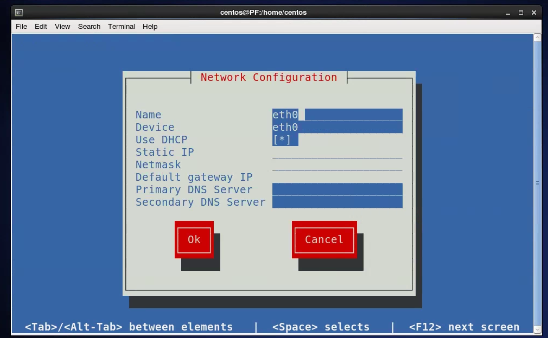 static 고정 ip 사용시에는 Use DHCP * 에서 space bar 를 누릅니다.