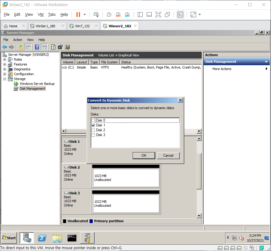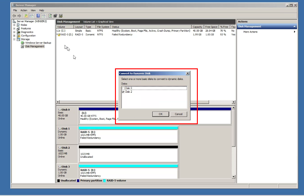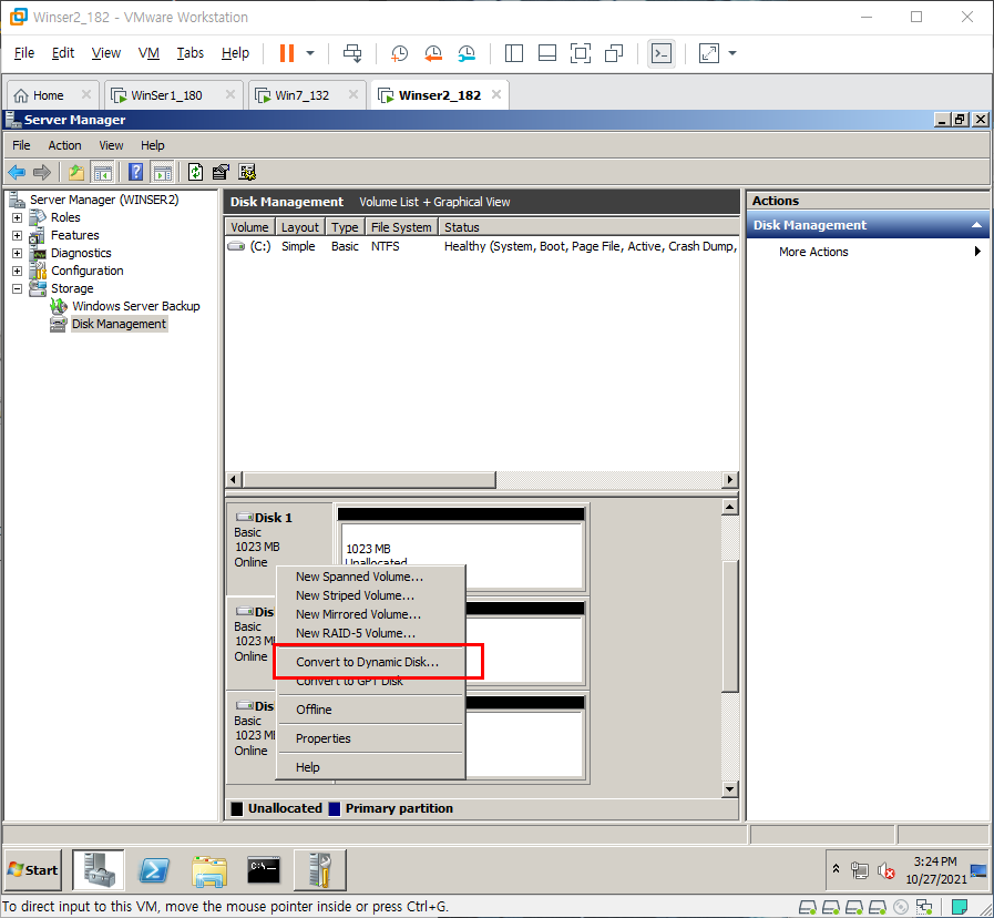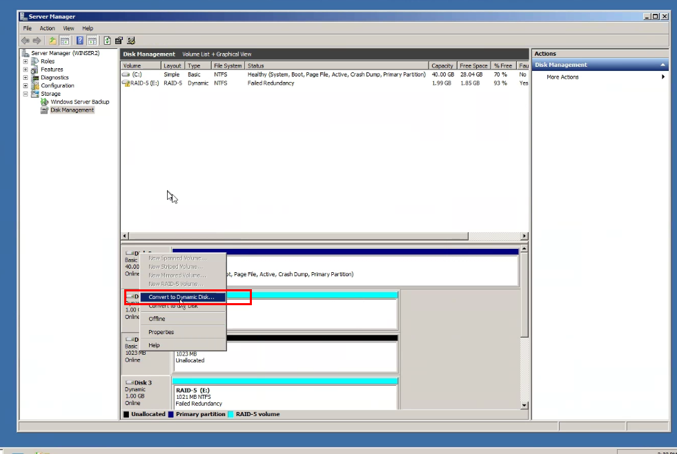 우클릭 후 Convert to Dynamic Disk 로 변경