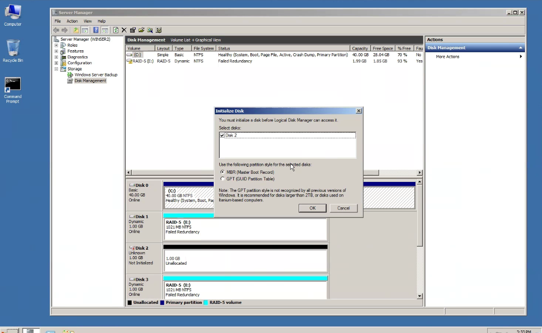 Windows 에도 RAID 를 걸수있다는 것 확인