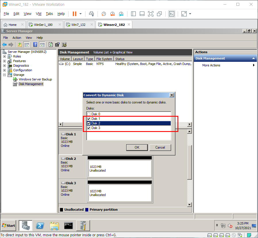 우클릭 후 Convert to Dynamic Disk 로 변경