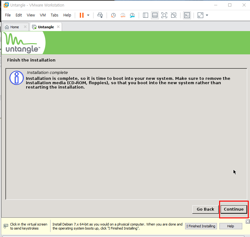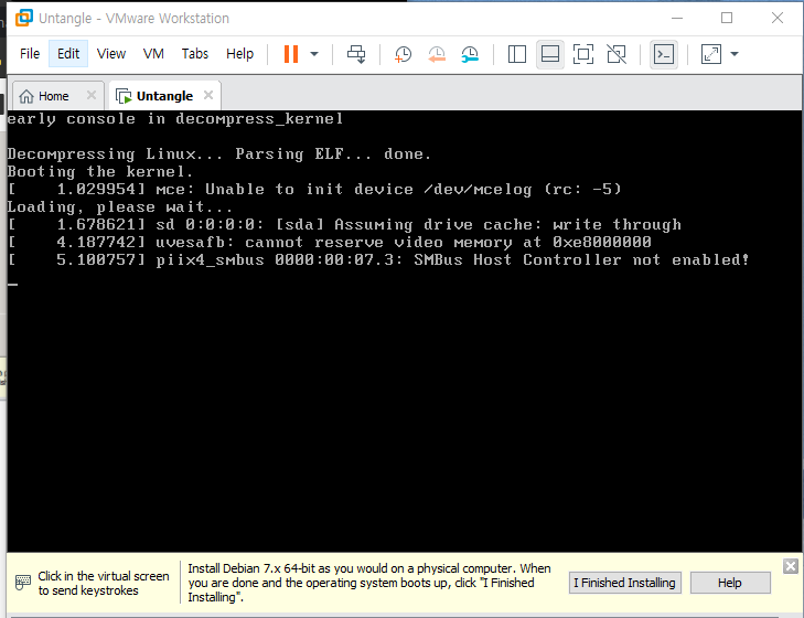 이 상태에서 안 넘어가면 강제로 power off 후에 다시 power on 해준다