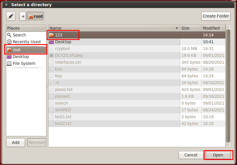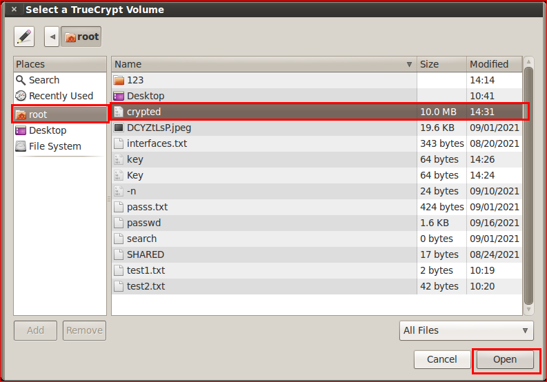 아까 만든 10MB /root/crypted 선택후 Open