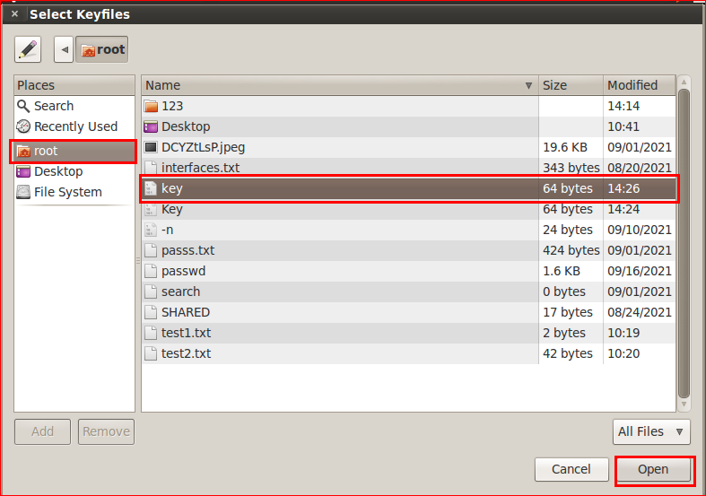 /root/key 선택 후 Open