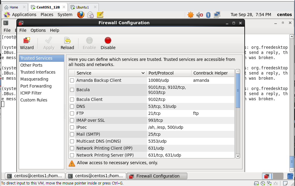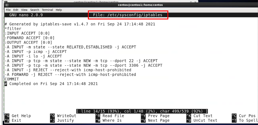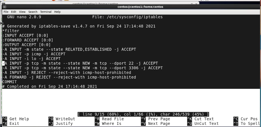 예를들어서 centos1 에서의 방화벽 table 을 centos2 나 centos 3에 붙여넣으면 해당 machine 에서도 그대로 적용된다.