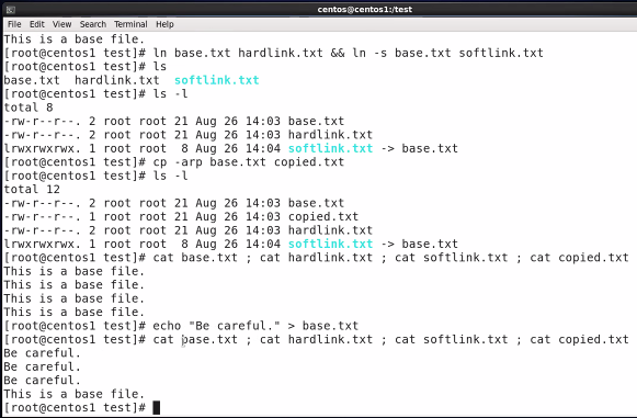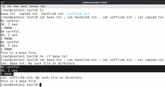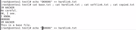 hard link는 원래의 원본 file 내용을 그대로 가지고 있지만, soft link는 새로 생성된 원본파일의 내용으로 변경됨.