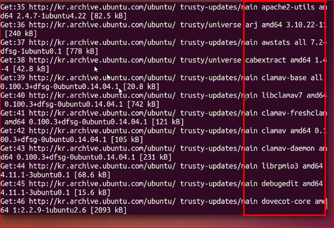 필요한 apache2-utils 나 amd64 등을 다운 받고 있다