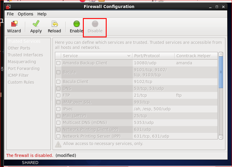 1 방화벽을 disable