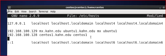 [root@centos1 centos]# nano /etc/hosts