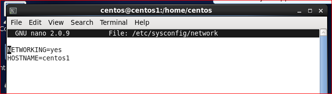 [root@centos1 centos]# nano /etc/sysconfig/network