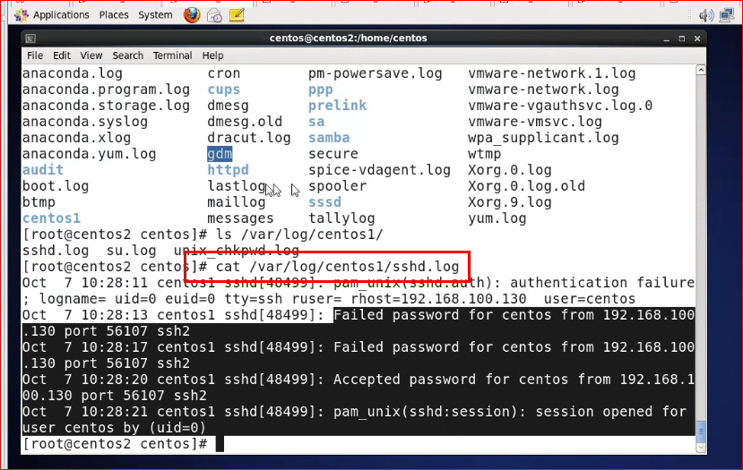 각 리얼 서버(Web, Mail, Database, ...)에서 발생되는 로그들을 저장할 중앙 백업 로그 서버(Centos2)를 두고, 예를 들어 리얼 서버(CentOS1)에 sshd 데몬을 실행시켜두고, 외부 머신(Ubuntu)이 SSH로 리얼 서버에 침투하면 리얼 서버가 로그를 발생